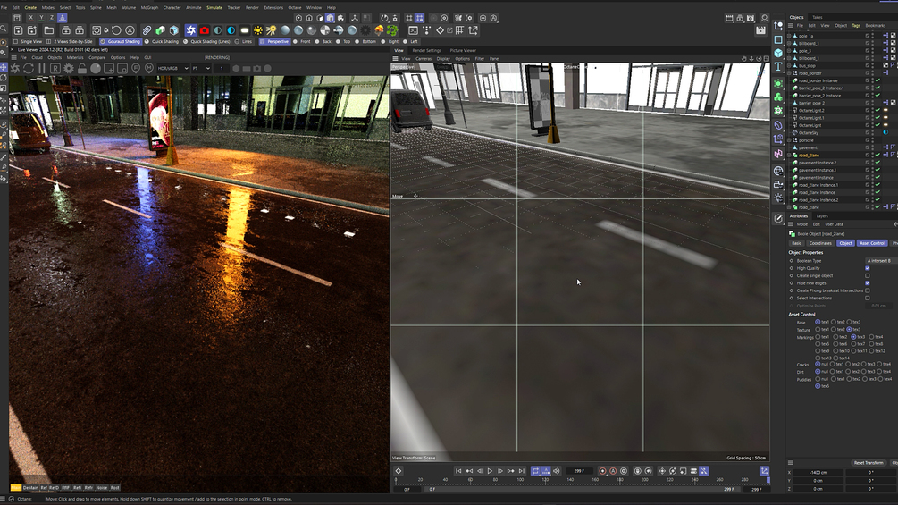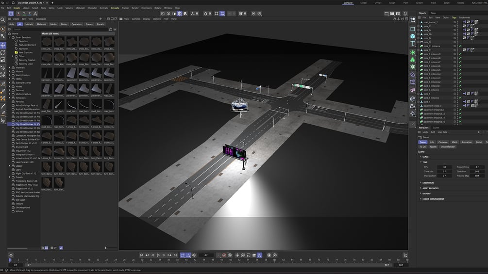 - copy elements from city_street_project_XXXXX.c4d to your project file